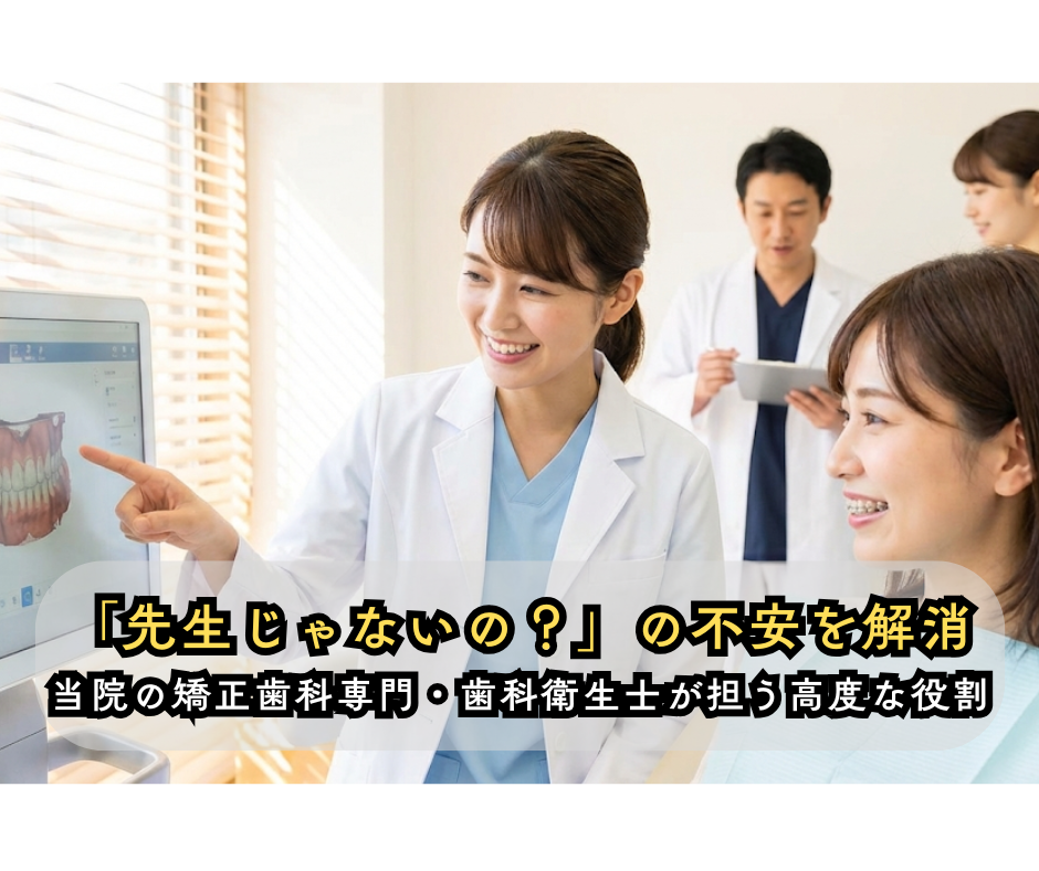 もし診療中に、「先生じゃなくて衛生士さんが診てくれている」と感じることがあれば、どうか安心してください。それは「手抜き」ではなく、信頼できるプロフェッショナルによる分業と連携が行われている証です。