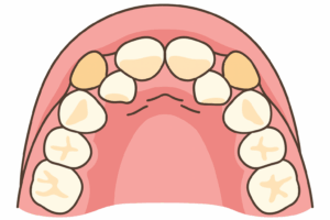 ① 叢生(そうせい)── 歯が重なっている状態や八重歯の状態
