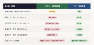 マウスピース型矯正装置とワイヤー矯正装置の基本的な違い