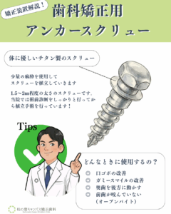「矯正治療を検討しているけれど、歯茎にネジを埋めるって本当?」「アンカースクリューって痛くないの?」