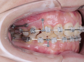 歯科矯正用アンカースクリューから前歯を引いている症例